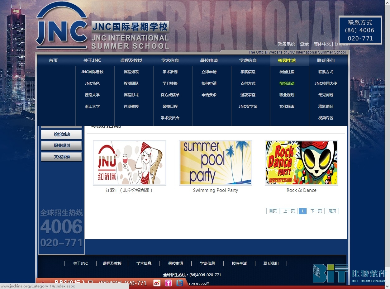 JNC国际暑期学校是大中华地区的最早一批引入北美大学教育体系的国际暑校联盟,前身为“暨南大学国际暑期学校”。暨新教育咨询有限公司(广州)专注于运营中美国际交流项目,为中美精英教育资源搭建交互平台,下属于暨新国际教育集团(JNC)。